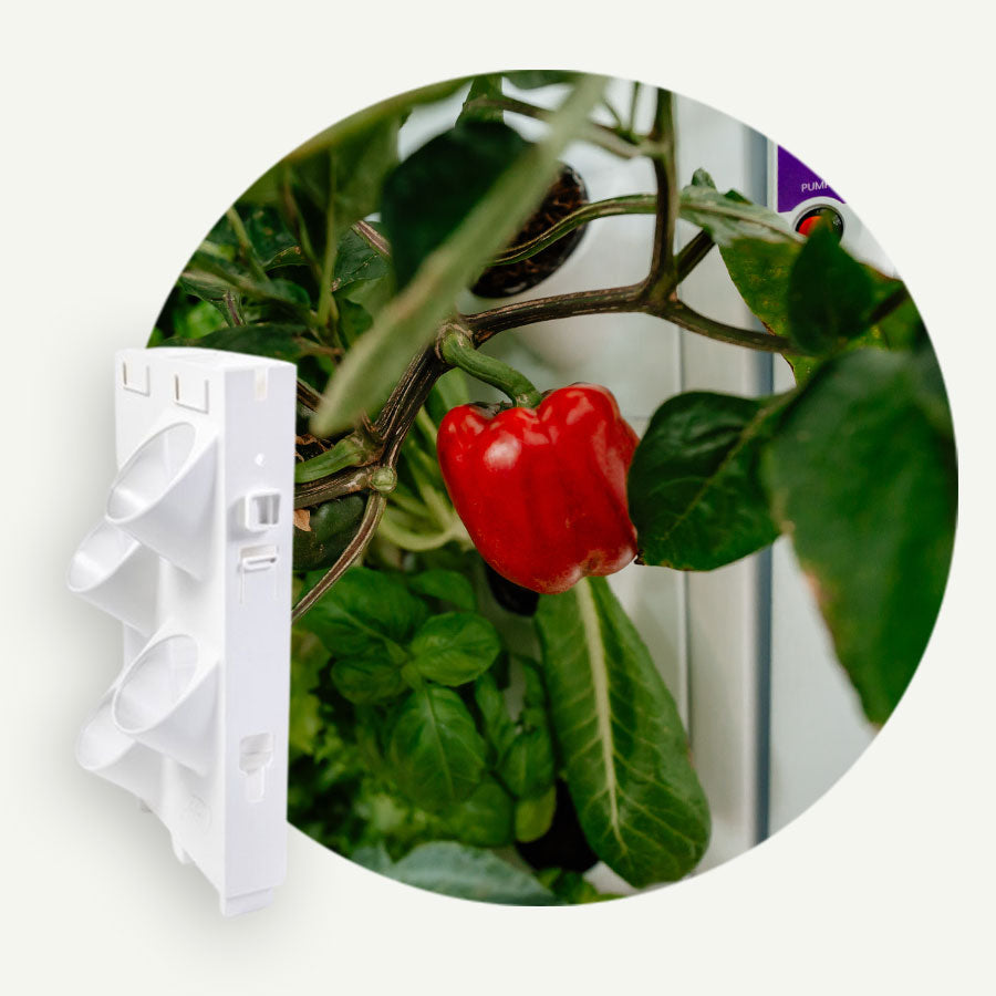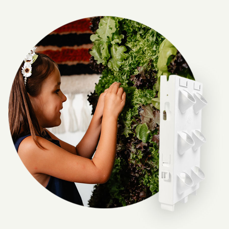 You can grow a variety of leafy greens, vegetables, herbs, and fruits at home with the Harvest Wall. The Harvest Tile comes in 2 sizes of grow ports, allowing you to further customize your indoor garden to your needs.
